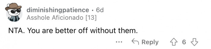 From there, the brother and SIL both blocked the OP's phone number and social media accounts. They haven't spoken to each other in six months.