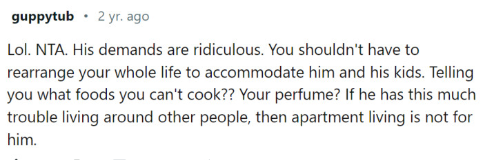 Everyone has the right to live in their home without being subjected to the unreasonable demands of their neighbors. Paul's requests were beyond normal neighborly compromises and veered into the territory of infringing on one's rights as a tenant.