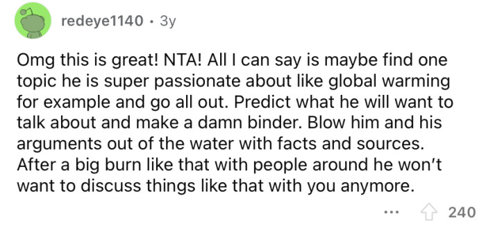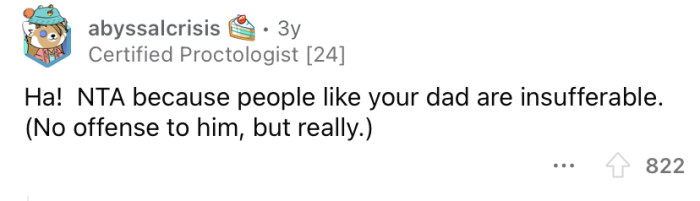 Reddit/doubled-or-nothingThe OP says he's been looking for ways to redirect these conversations with his dad.