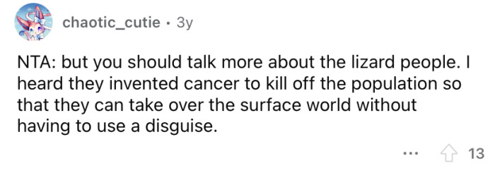 "You should talk more about the lizard people."