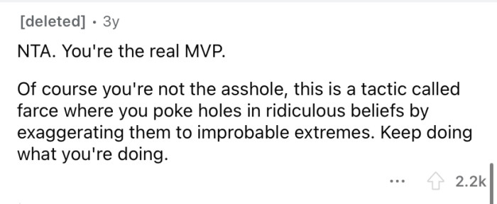 This situation illustrates the complexities of family communication, particularly when differing beliefs lead to conflict. The Redditor's strategy of using humor to deflect serious discussions may reflect deeper insecurities about engaging in contentious topics with his father.