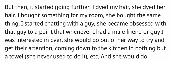 OP says that she has a very distinct style, and while Kaya is free to replicate the looks, it was odd that she wore the exact same outfit that OP wore. She thought Kaya was satisfied with copying her clothes and accessories, but she amped it up.
