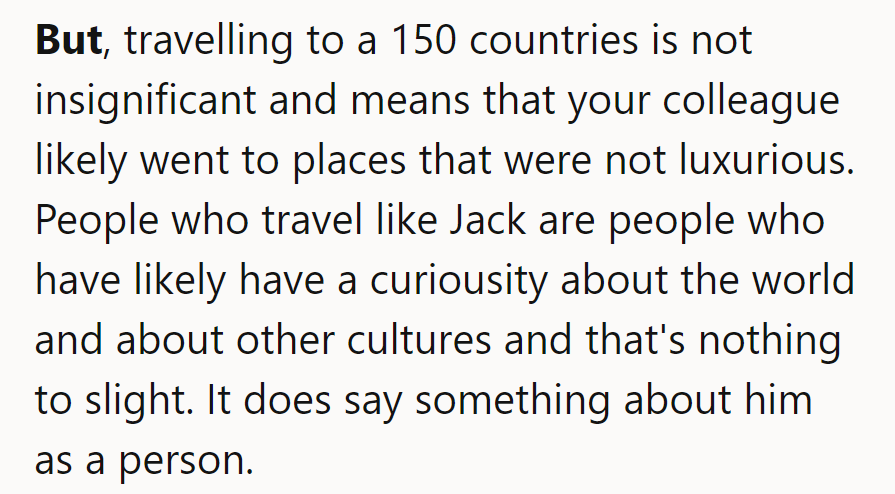 Employee Criticized for Telling New Colleague That His 150-Country Travel Achievement Merely Reflects Parental Wealth, Not Personal Achievement