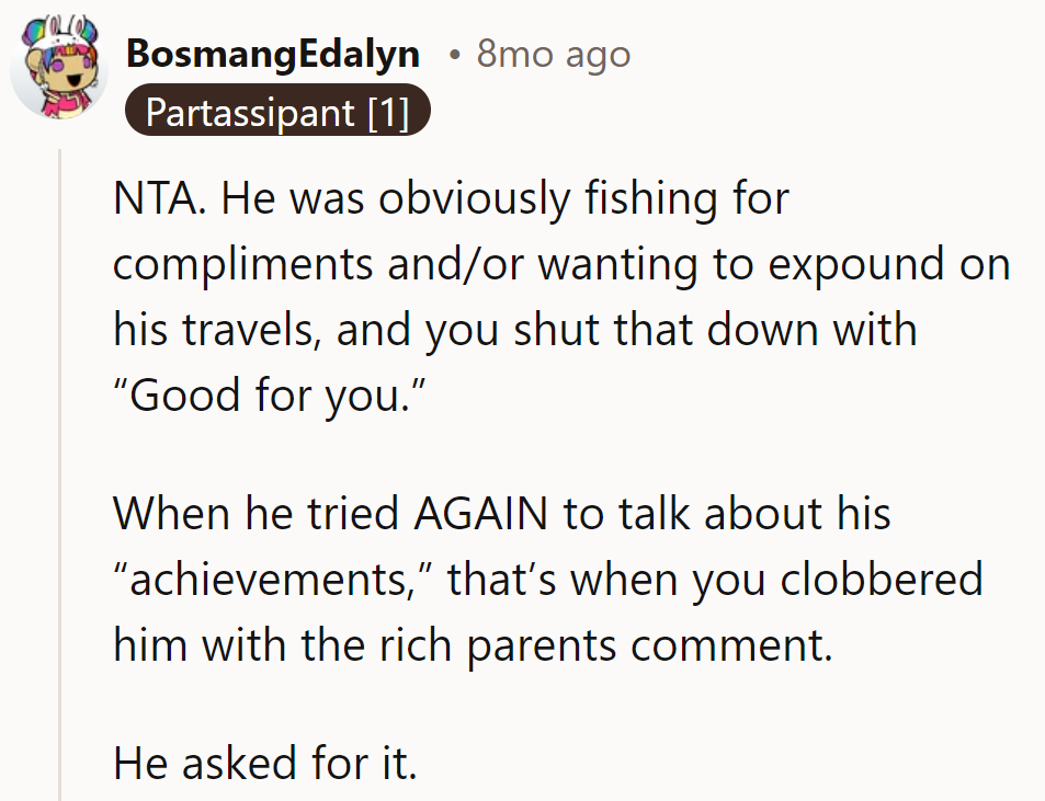 OP, having fought tooth and nail for every success, finds it difficult to celebrate a colleague's travel achievements, seeing them not as personal triumphs but as mere byproducts of financial privilege. This reaction underscores a broader societal debate: the distinction between achievements earned through personal effort versus those afforded by the luck of one's birth.