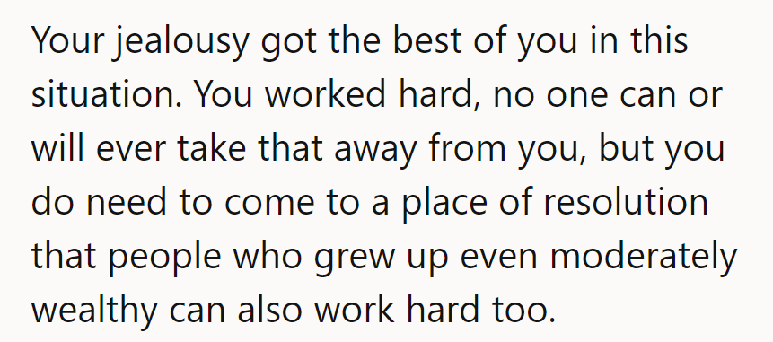 This stark contrast in life experiences can foster a sense of disdain among those who had to claw their way out of poverty toward those who seemingly glide through life on the wings of inherited wealth. The Reddit post in question vividly illustrates this tension.