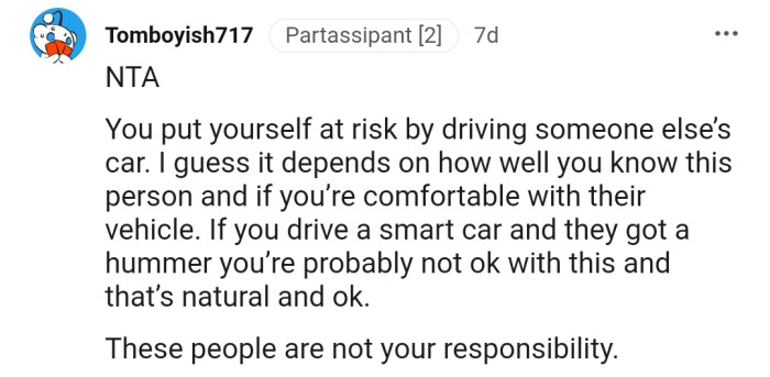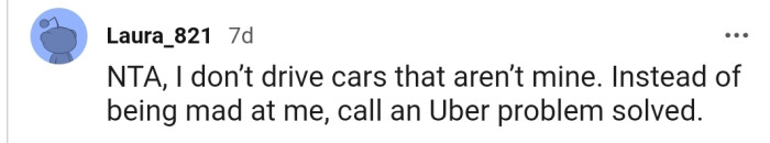 "NTA, I don’t drive cars that aren’t mine"
