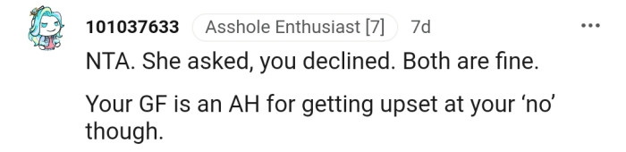 "She asked, you declined. Both are fine."