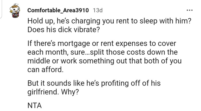 "Hold up, he’s charging you rent to sleep with him?"