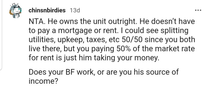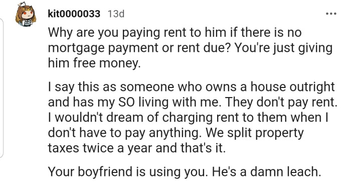 Some even believe OP’s boyfriend is ripping them off, considering that the house is fully paid for.