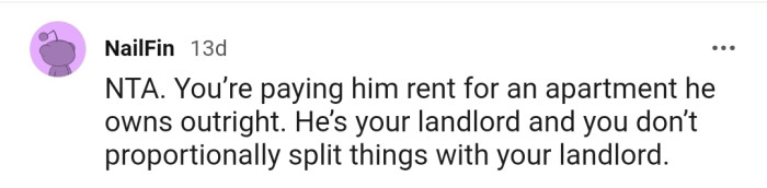 "He’s your landlord, and you don’t proportionally split things with your landlord."
