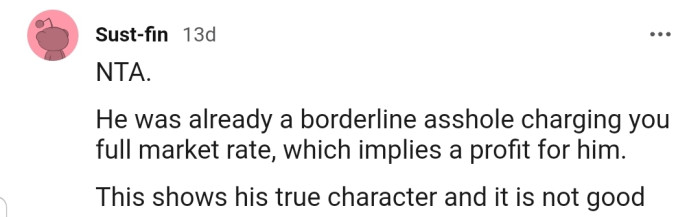 "He was already a borderline a**hole charging you full market rate, which implies a profit for him."
