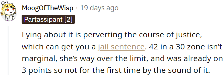 At this juncture, OP was faced with a tough choice. Does he take the fall and enroll in a breezy two-hour speed awareness course for first-time offenders, or throw his girlfriend under the bus and let her face the music? The music was license suspension in this case since she already had 3 points under her belt.