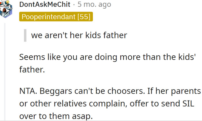 Frustrated, the OP firmly stated that while they are willing to help, they cannot cater to her every demand simply because she is pregnant. This confrontation left SIL in tears, and the OP's spouse feels caught in the middle of the situation.