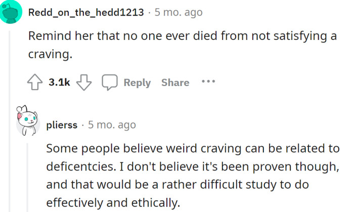 While the exact cause of cravings is not fully understood, hormonal changes, nutritional needs, and psychological factors are believed to play a big role. This story is about cravings during pregnancy but also boundaries and respect.