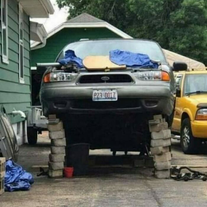 These posts are funny and eye-opening, showing how far people will go to save a buck. But they’re also a reminder that while saving money on car costs can be smart, skimping on essential repairs can turn a minor problem into a bigger—and often ridiculous—one. Scroll down for the wildest fixes to car problems, all sourced from the Facebook page “Anything Gone Wrong.”