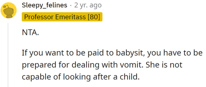 RedditThe OP explained they hired their sister to babysit their son because she needed a job: