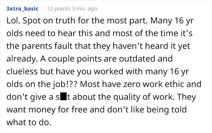 Boss Gives 16-Year-Old List Of "Life Is Not Fair" Rules On Her First Day Of Work And Has The Internet Debating About It
