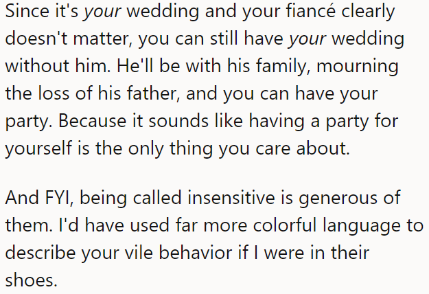 SourceThe OP explained her fiancé's father unexpectedly died right before their wedding date: