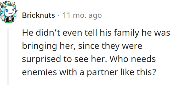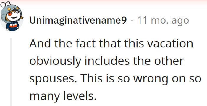 redditShe explained that her husband usually goes alone on a family vacation, but this time, she went with him: