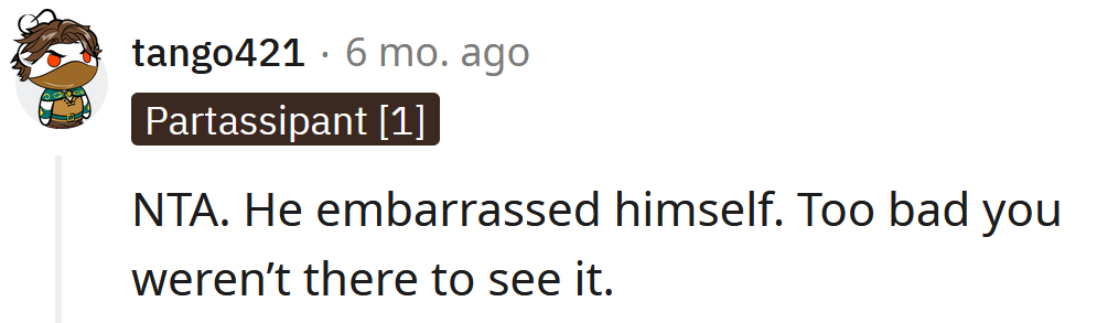 What are your thoughts on this situation? Do you think the OP was overreacting by going inside and ultimately causing his FIL to be embarrassed, or did his FIL embarrass himself with his selfishness?