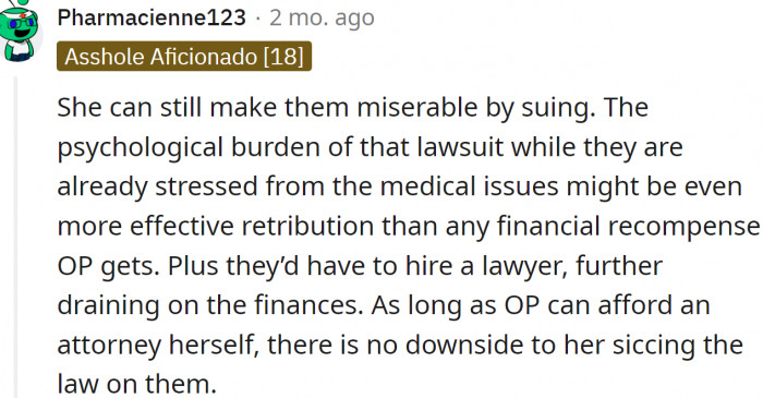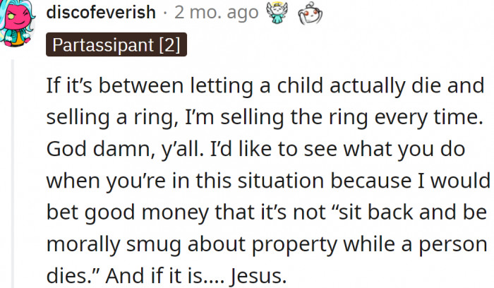 RedditThe treatment was expensive, and the family was not financially well-off. OP's mother had left her an heirloom family engagement ring in her will, and her father decided to sell it to pay for the treatment.