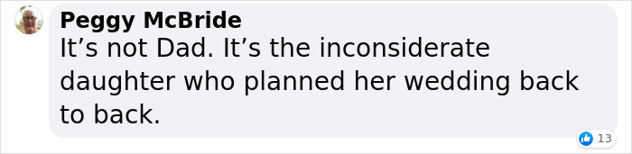 His two daughters scheduled their weddings on the same weekend, but a day apart, in two cities that are around 13 hours of driving away. Despite his best intentions to walk both of his daughters down the aisle, this dad couldn’t make it to the second wedding.