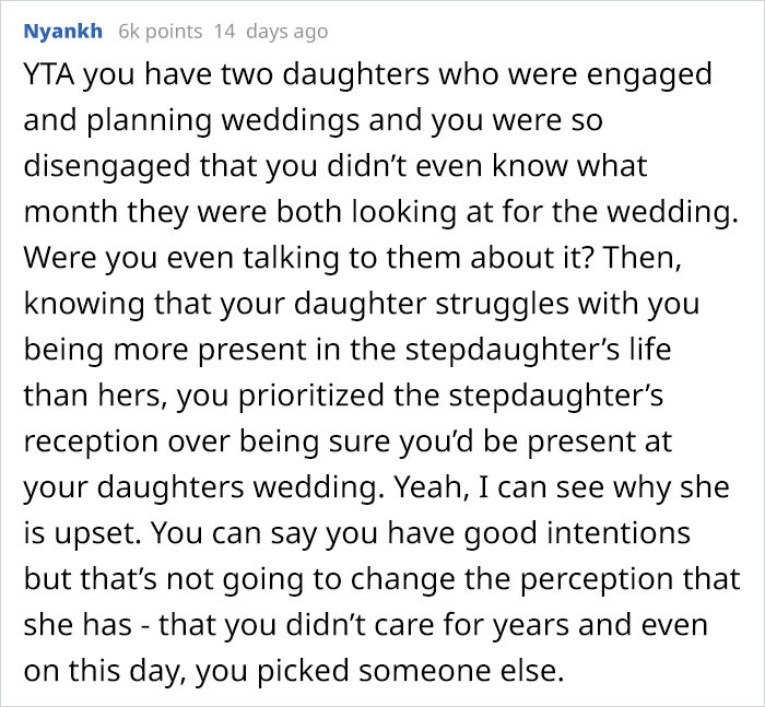 Father Didn’t Make It To His Daughter’s Wedding Because He Was Attending His Stepdaughters’, And Now His Daughter Won’t Talk To Him