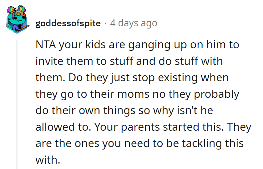 His kids envy his stepson's perks. The family needs to mind their business.