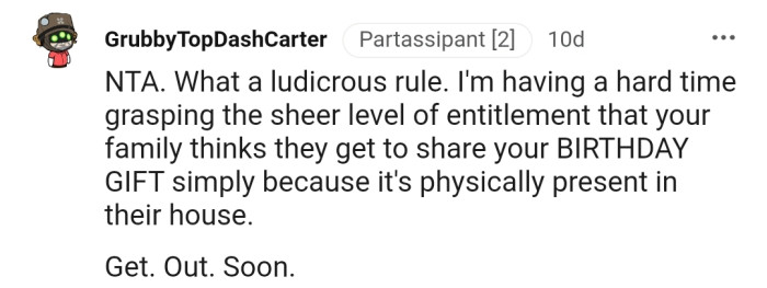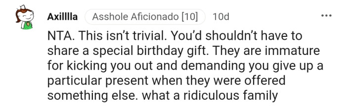 "I'm Having a Hard Time Grasping the Sheer Level of Entitlement That Your Family Thinks They Get to Share Your BIRTHDAY GIFT"