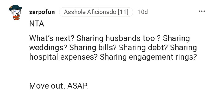 "NTA...What’s Next? Sharing Husbands Too?"