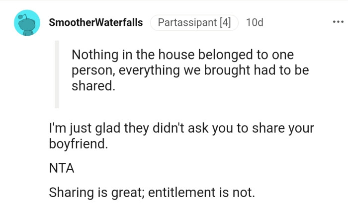Reddit.comOP's Family Has a Rule That Everything in the House Belongs to Everyone. It All Worked Out Fine When She Was a Kid, but Now, She Needs Some Things for Herself