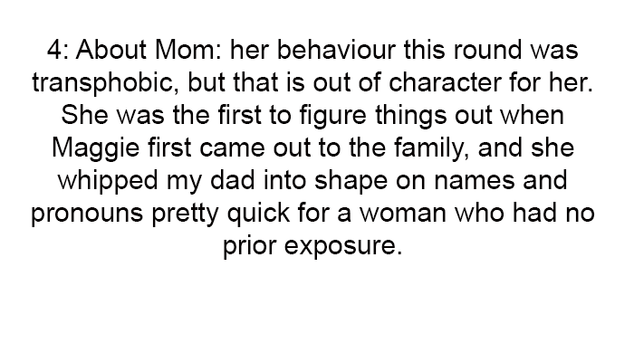 This situation illustrates the significant impact misgendering can have on family dynamics and individual well-being. It highlights the need for awareness and education surrounding gender identity to promote understanding and acceptance among family members. Open conversations about identity can foster intimacy and strengthen family bonds.