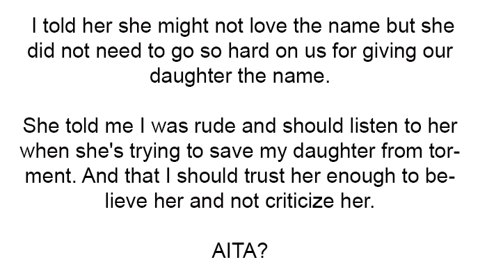 AITA For Telling My Sister Her Reaction To My Daughter's Name Was Way Over The Top And Totally Rude