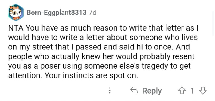 Reddit/ Wandernerd194Is it right to to fake a "friendship" to someone we barely recognize just because they died?