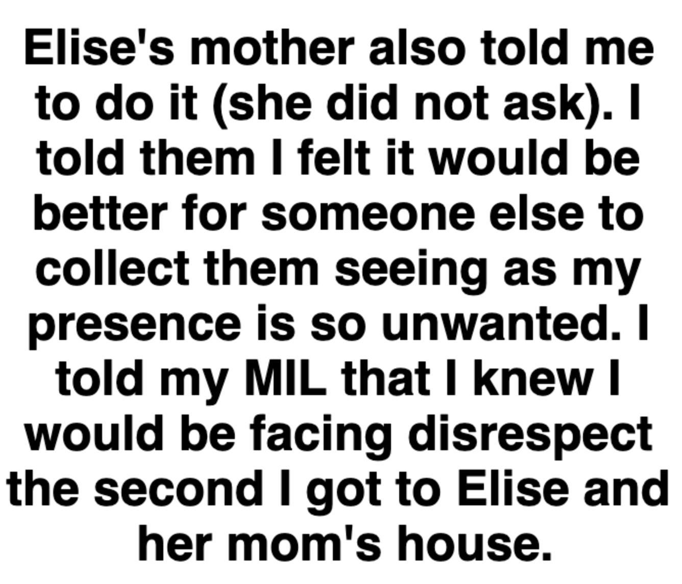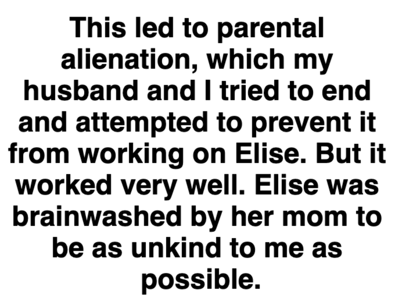 "Elise was brainwashed by her mom to be as unkind to me as possible."