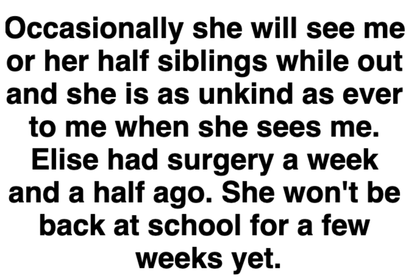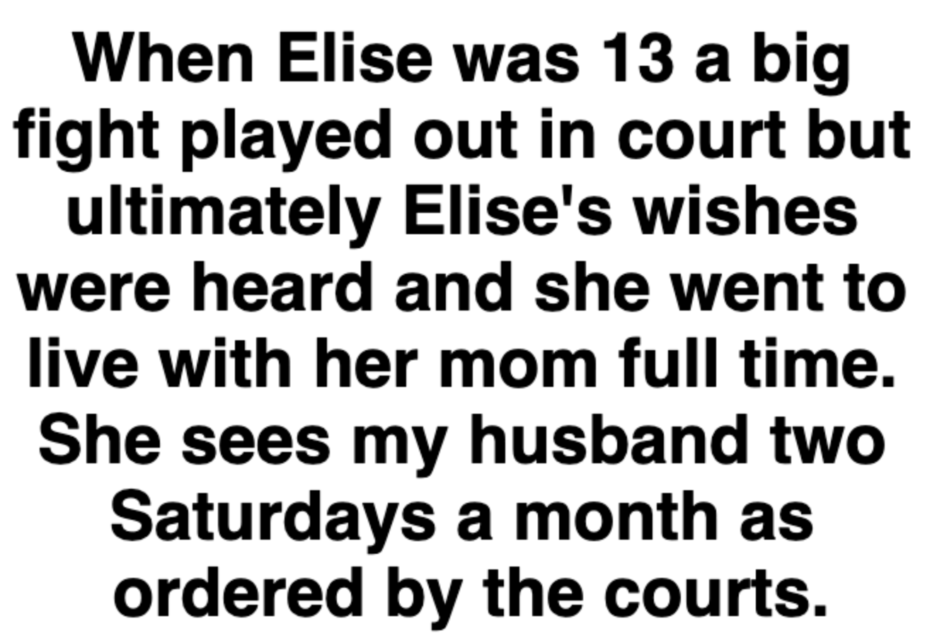 "Elise went on to live with her mom full time."