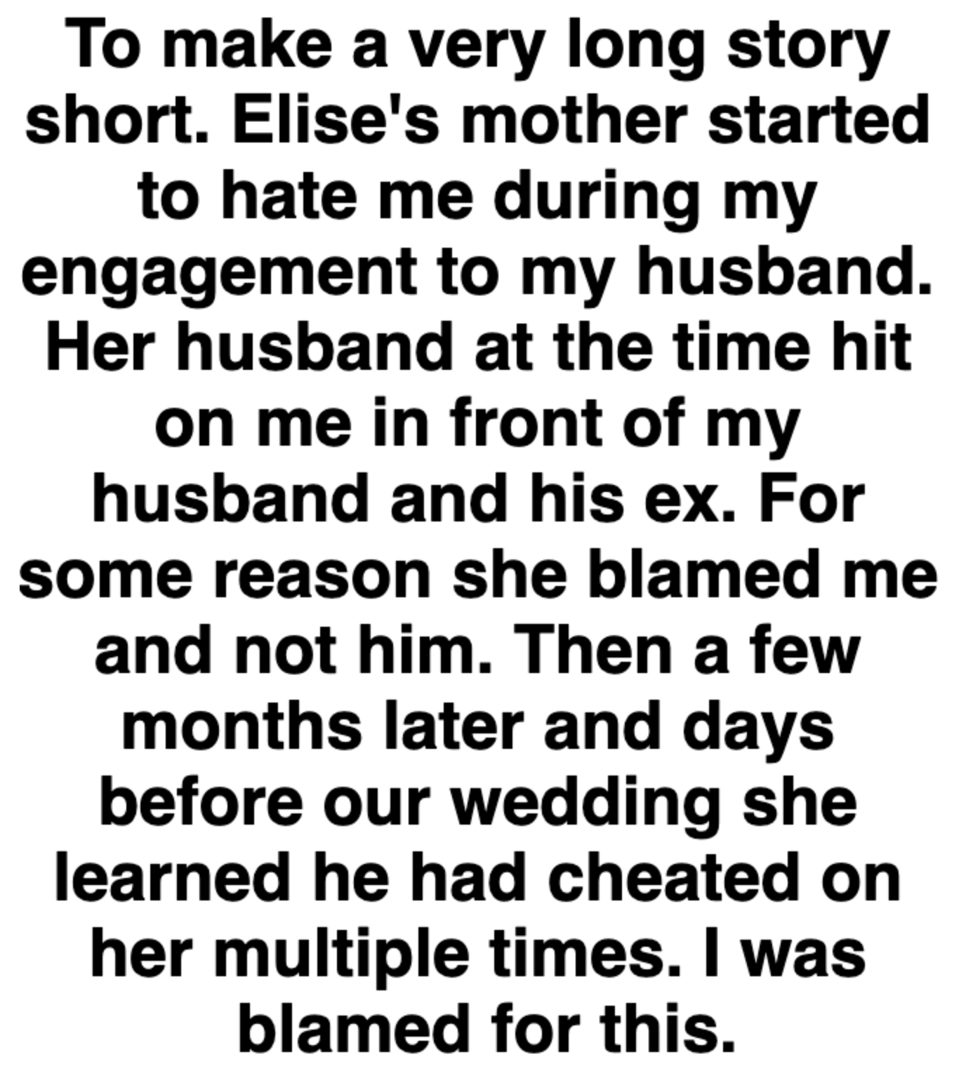 "Elise's mother started to hate me during my engagement to my husband."