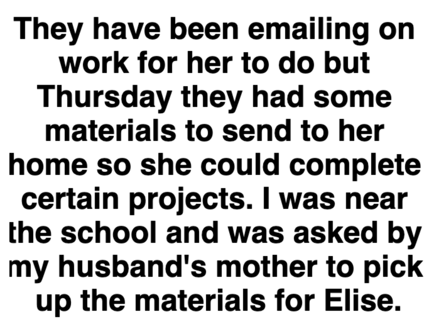 "They had some materials to send to her home so she could complete certain projects."