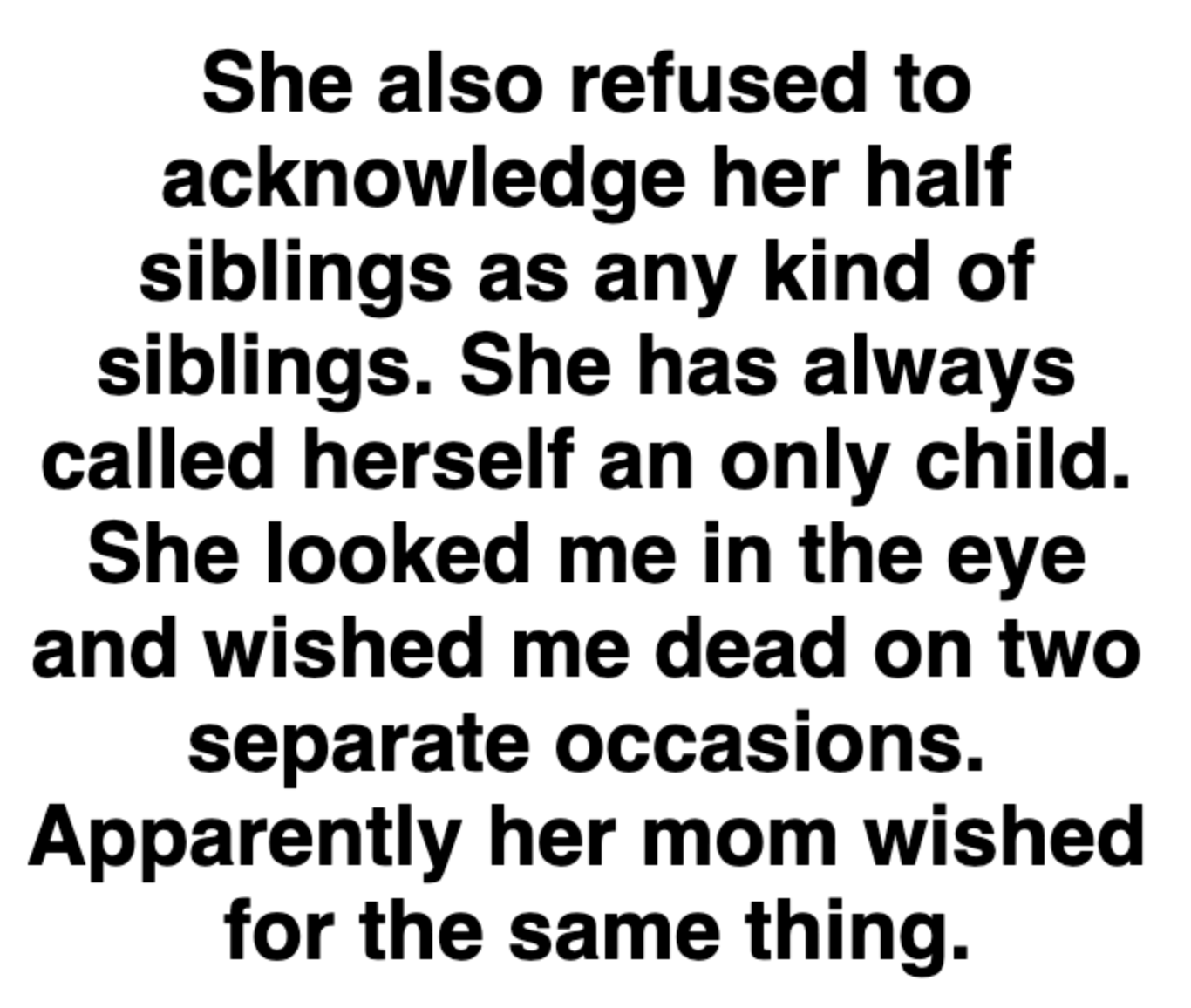 "She refuses to acknowledge her half-siblings as any kind of siblings."
