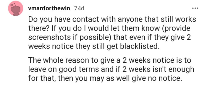 As one Redditor said, the whole point of giving a two-week notice is to leave on good terms. We're glad that OP didn't allow themselves to be bullied or guilt-tripped into returning to the company.