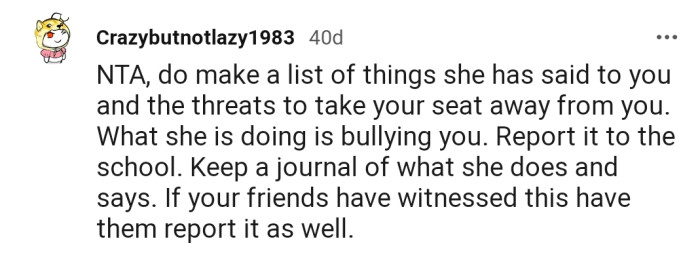 Reddit.comOP and many people in his school seem to dislike one of their schoolmates due to her annoying behavior