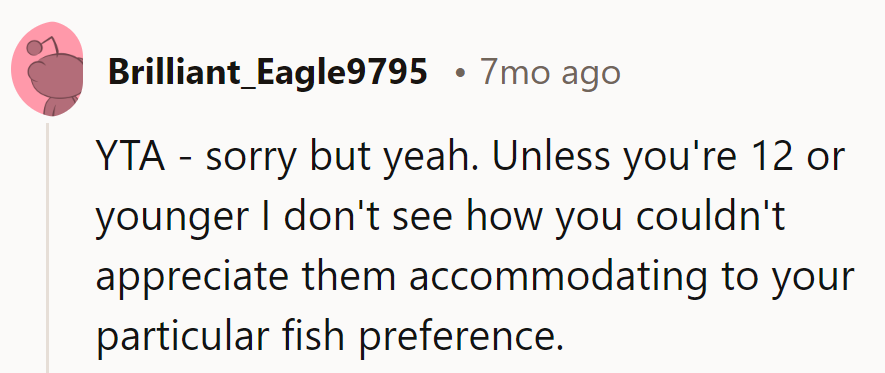 "I don't see how you couldn't appreciate them accommodating your particular fish preference."