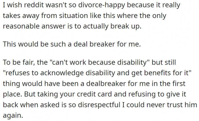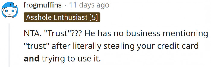 Boyfriend Is Insulted Because His Girlfriend Canceled Her Credit Card After He Refused To Return It