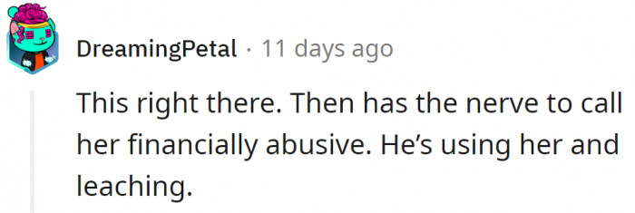 redditHer boyfriend is unemployed due to health issues, so she mostly covers all their expenses.