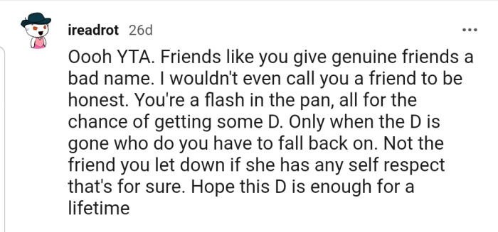 The commenters didn’t spare OP’s feelings and labeled him a terrible friend for doing such a thing. Who knows, this might just be the beginning of the end of their friendship.