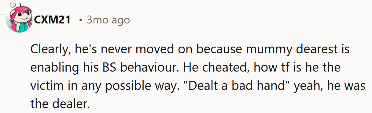 The OP's mother and Tom have continued to reach out to the Redditor and defend Tom's actions. Tom stated that "all men stray" and that the OP's husband probably has as well, which prompted the Redditor to block him.