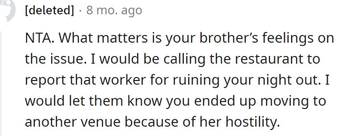 Redditors told the OP that he was not in the wrong for wanting to celebrate his brother's freedom. They also advised him to block his ex-SIL and stop allowing her to bother him.