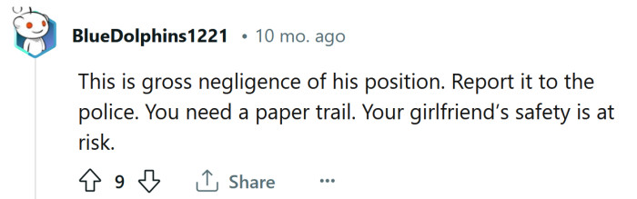 Reddit/throwra-dmvcreepHe explained that his girlfriend is very beautiful and often attracts the attention of other men.