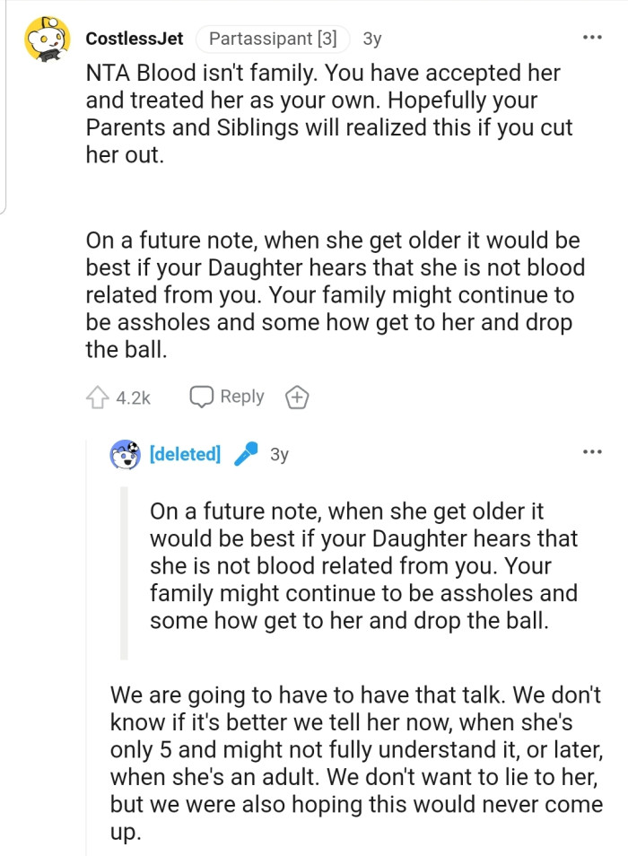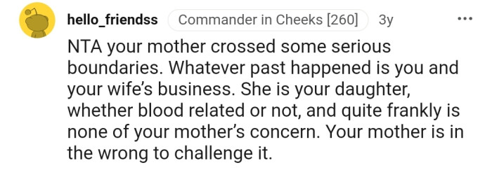 "She is your daughter, whether blood-related or not, and quite frankly, is none of your mother’s concern."