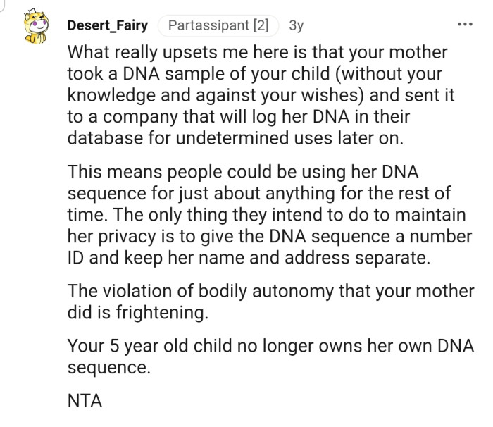 Redditor Severs Ties With Mother After She Carried Out An Unauthorized DNA Test On His Daughter